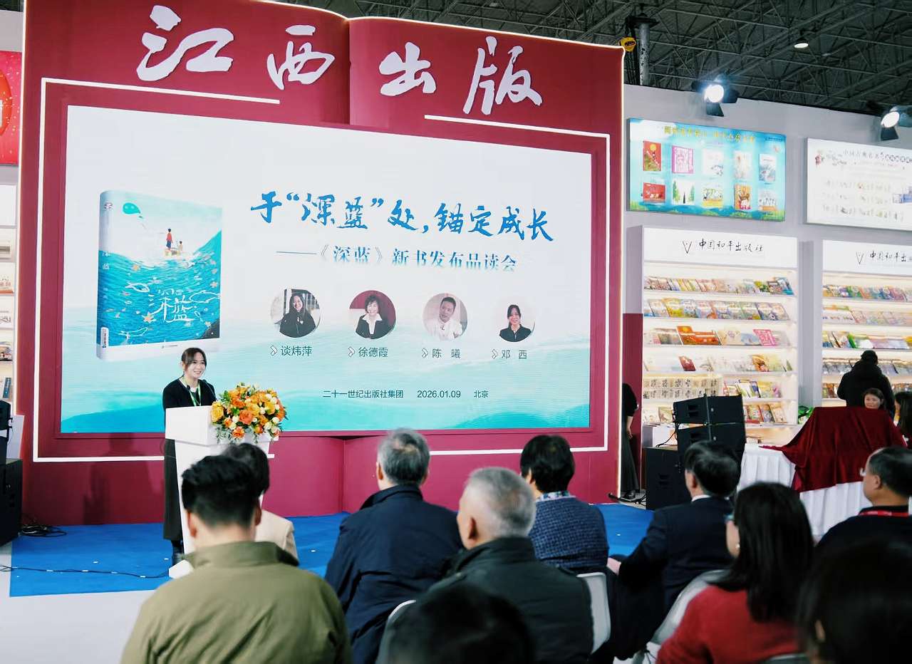1月9日上午,由江西出版传媒集团有限公司、中文天地出版传媒集团股份有限公司主办,二十一世纪出版社集团承办的“于‘深蓝’处今日云策,锚定成长——《深蓝》新书发布品读会”活动在北京图书订货会现场举行。